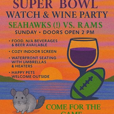Big screen TV inside, sound all around. Food & waterviews outside. Happy pets welcome outside. Umbrellas & heaters will be up. Rotate in and out.